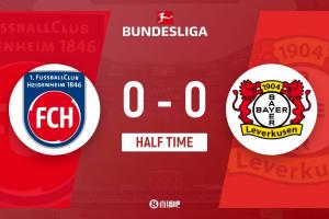体育资讯4月5日讯 北京时间4月5日21:30,德甲第28轮,勒沃库森做客福伊特竞技场挑战海登海姆。上半场,贝克小角度打门稍偏,吉姆博爆射中横梁。上半场比赛结束,勒沃库森暂时客场0-0战平海登海姆。