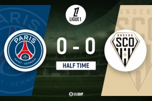 体育资讯4月5日讯 北京时间4月5日23:00,法甲第28轮,巴黎圣日耳曼坐镇主场王子公园球场迎战昂热。上半场,帕乔破坏单刀,维蒂尼亚远射造险。上半场比赛结束,巴黎圣日耳曼暂时0-0战平昂热。