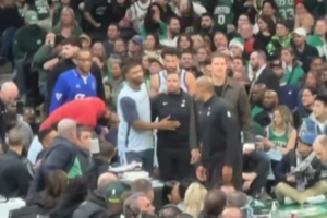 本场比赛绿军旧将斯玛特没有出战,球馆内有不少球迷高呼:“我们想要斯玛特。”