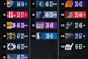 同时,西部第11的太阳(理论上仍存进入附加赛可能),落后森林狼与灰熊11个胜场。