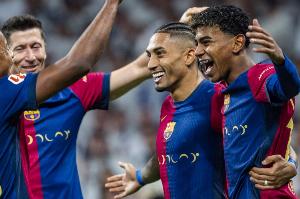 莱万多夫斯基、拉菲尼亚和亚马尔本赛季已合力攻入82球,在确保至少还有10场比赛(若晋级欧冠决赛则最多13场)的情况下,突破百球大关几无悬念。