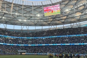 本场比赛共计58619名球迷来到梭鱼湾现场观赛。赛后,近6万名球迷将梭鱼湾营造成了演唱会现场,合唱起了《大海啊故乡》。