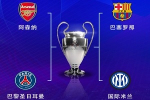 体育资讯4月17日讯 欧冠1/4决赛次回合结束,四强对阵出炉:阿森纳、巴黎、巴萨、国米。