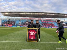 四年为亚泰出场100场,真的非常的开心,这是我的荣幸,新的赛季祝愿亚泰可以取得好的成绩,最后再次感谢支持我的球迷,谢谢你们一直以来的支持,我会继续努力。