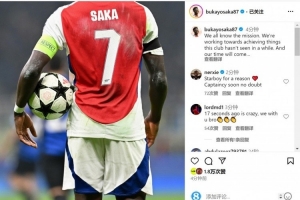 阿森纳前锋萨卡更新社媒动态,晒出自己的背影照片,并写道:“我们都知道自己的使命,我们正在努力实现这家俱乐部许久未见的成就,我们的时代终将到来。”