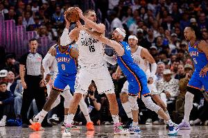 “这就是那种你利用好肾上腺素去完成的事情之一,比如我告诉过你们,打灰熊的首场比赛前,我的肾上腺素分泌过多了,那都快成了一件消极的事情了。但是那场抢七,在那之前我们都是两天一赛,然后我们可以休息两天,为抢七做准备,恢复体力。所以整场比赛,我想的就是,‘如果有必要的话,我会死在这块球场上。’疲劳将不会是我们没有赢球的原因。但有一两个回合我们贴防他,很幸运,我们有很棒的团队防守,有一些回合我在绕前防守他,卡他的下盘,我不知道他的官方体重有多少,但这哥们就像进攻型防守球员(NFL球员类型)那般强壮,感觉就是顶不动他。”