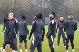 体育资讯1月22日讯 曼联今日进行了备战欧联杯赛前训练,从训练现场视频可以看出,安东尼今日也参与了球队的合练。
