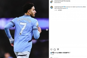 体育资讯1月26日讯 英超第23轮,曼城主场3-1战胜切尔西,马尔穆什上演首秀。赛后,他更新了社媒动态。