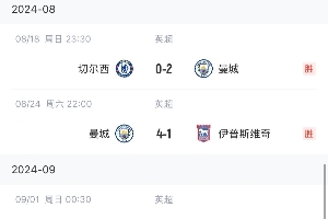 英超首轮,切尔西0-2曼城