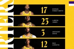 赛前,湖人公布了本场首发:克里斯蒂、里夫斯、詹姆斯、芬尼-史密斯、浓眉。