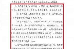 2025赛季中超首次球员报名规则跟2024赛季相比有一些变化: