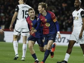 巴塞罗那在本轮西甲比赛中7-1大胜瓦伦西亚,弗朗基-德容在本场比赛中首发出战,并为球队打入了第一粒进球。