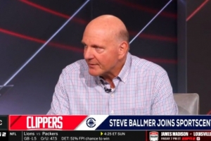 体育资讯9月5日讯 今早,快船老板鲍尔默现身ESPN节目《SportsCenter》,和知名女记者Ramona Shelburne进行对话。