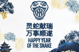 海报上用中文写着:灵蛇献瑞,万事顺瑞。国米官推还写道:灵蛇祝大家新春快乐🐍🖤💙。