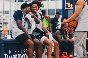 体育资讯10月1日讯 今天,森林狼晒出了球队的训练照。