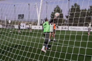 皇马正在备战这场比赛,琼阿梅尼在训练中侧身勾射破门,技惊四座,队友纷纷惊呼。