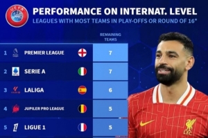 体育资讯2月1日讯 本赛季欧战小组赛已经完赛,《转会市场》也统计了各大联赛在欧战淘汰赛阶段的席位: