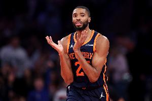 上半场, 尼克斯两位球员米卡尔-布里奇斯和阿努诺比均表现不佳,布里奇斯19分钟7投0中,三分6中0没得分,也没有其他任何有效数据,正负值-22;