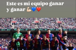 本场比赛巴萨球员加维与对手头部相撞后被抬离出场,在接受检查后已获准回家休养。加维在个人社媒晒出全队赛前合影,配文写道:“这就是我的球队,一直赢下去!”