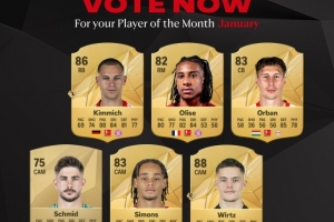 体育资讯2月5日讯 德甲官方公布了一月联赛最佳球员候选名单,其中,维尔茨、基米希、哈维-西蒙斯、奥利赛等人入选。