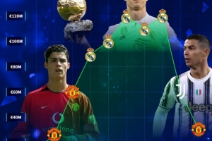 《转会市场》在2004年才录入C罗的身价,2004年达到1800万欧元,2008年赢得欧冠时上涨到6000万欧元。