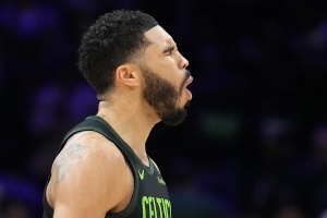 全场,塔图姆出战37分钟,26投13中,三分14中7,罚球9中7,得40分6板4助。正负值为+18。