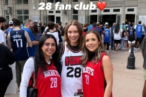 赛后,申京女友Hannah Cherry(中间)在INS晒出了她和两位球迷的合照,并写道:“28号的球迷。”