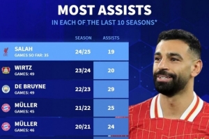 体育资讯2月14日讯 萨拉赫在本赛季以19次助攻领跑五大联赛各项赛事总助攻榜,《转会市场》也列出了近10赛季的总助攻王情况。