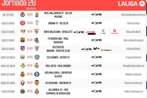 体育资讯2月14日讯 西甲官方公布了第26轮比赛的开球时间,巴萨vs皇家社会3月2日1点30分开球,贝蒂斯vs皇马3月2日23点15分开球。
