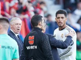 皇马认为,裁判没有正确听到贝林厄姆在场上的话,导致红牌判罚存在严重错误。根据裁判的比赛记录,贝林厄姆在第40分钟因用“Fuck you”对裁判说话而被罚下。然而,Movistar+的报道表示,贝林厄姆实际上是对裁判说:“fuck off(滚开)。”