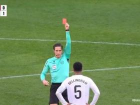 关于比赛的评论从对贝林厄姆被红牌罚下的消息开始:“如果他一直说‘piece of shit’和‘fuck off’,早该被罚下了。”
