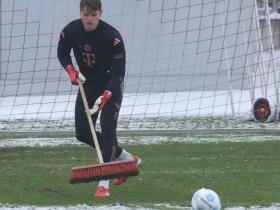 由于周日慕尼黑遭遇了猛烈的降雪,拜仁的训练场被积雪覆盖。这样一来,进行专业的门将训练显得不太可能。于是,乌尔比希与门将教练迈克尔-雷赫纳一起,用扫帚清除了球门前的积雪。