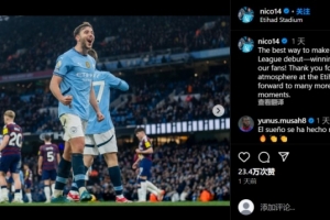 赛后这名中场在社媒发文纪念自己的英超首秀:在我们的球迷面前赢下比赛,这是我英超首秀的最佳方式。感谢伊蒂哈德营造的不可思议的氛围,期待更多特别的时刻。