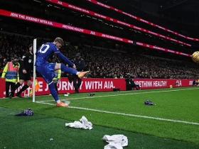 在12月切尔西客场4-3击败热刺的比赛中,帕尔默在南看台前准备开角球时被投掷物击中,据报道,尽管许多人预计会有巨额罚款,但英足总对热刺只是进行了轻微警告,提醒他们要履行责任。