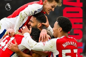 体育资讯2月22日讯 本轮英超阿森纳将坐镇主场迎战西汉姆,球队官推也晒出海报为本场比赛预热,海报中是厄德高、恩瓦内里等人与梅里诺庆祝进球合影。