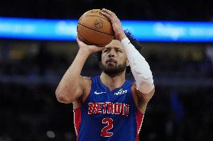 上半场,活塞后卫康宁汉姆表现全面,打了17分钟10投4中,三分5中3、罚球4中3拿到14分5篮板5助1抢断,也有4失误。