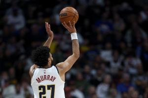 体育资讯01月15日讯 NBA常规赛,掘金对阵独行侠。上半场比赛,贾马尔-穆雷狂砍32分。