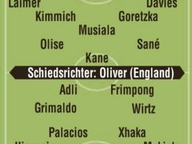 前场:奥利塞、穆西亚拉、萨内、凯恩