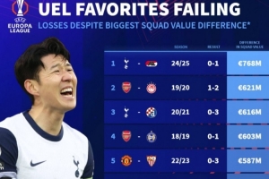 体育资讯3月7日讯 热刺在本轮欧联杯16强战首回合0-1不敌阿尔克马尔,延续了近期低迷状态。《转会市场》也列出了近年五大联赛豪门球队在欧联杯淘汰赛被爆冷情况。