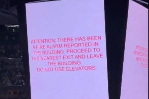 第一节结束后,现场响起了火情警报,球迷纷纷开始撤离;