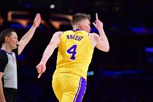 上半场,湖人新秀克内克特表现出色,提供了充足的火力支持,首发出战17分钟,投篮12中6,三分球7中3,拿到15分1篮板1助攻的数据。