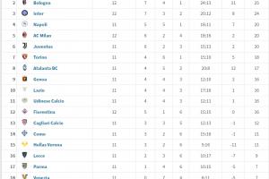 排在次席的是博洛尼亚(25分),第三是国米(24分),而那不勒斯、米兰以及尤文图斯均拿到了20分,位列4-6名。