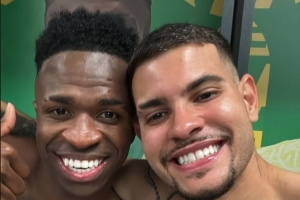 吉马良斯社媒晒出与绝杀功臣维尼修斯的合照,并配文:“世界最佳,维尼修斯。”