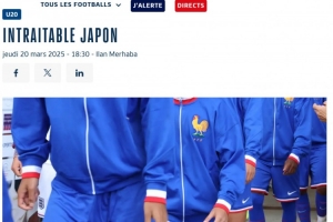 体育资讯3月21日讯 法国足协官网报道法国U20在热身赛1-3不敌日本U20,并以“势不可挡的日本”作为标题。