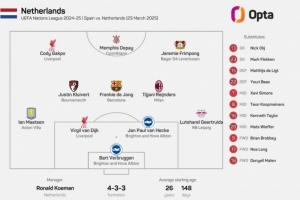 体育资讯3月24日讯 欧国联1/4决赛次回合,荷兰前往客场挑战西班牙。本场比赛,荷兰主帅科曼排出了一套没有任何荷甲球员的首发阵容,2017年11月9日以来首次出现如此局面。