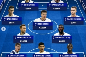 德转列热刺队史身价最高阵:凯恩领衔,孙兴慜、贝尔在列