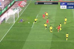 比赛第25分钟,海港19岁小将李新翔左路得球启动,连续晃动后起脚抽射破门,攻入海港一线队生涯处子球,海港扳回一球暂1-2青岛西海岸。