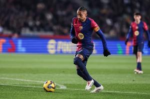 体育资讯4月1日讯 据《世界体育报》报道,在国王杯对阵马竞开始前48小时,拉菲尼亚出现在巴萨的训练中,他的右手手腕处缠着绷带。