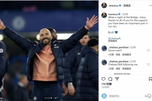 切尔西主帅马雷斯卡社媒晒出庆祝胜利的照片,配文:“斯坦福桥多么美妙的夜晚,非常感谢大家的支持,你们的支持是我们取胜的重要因素。蓝军💙”